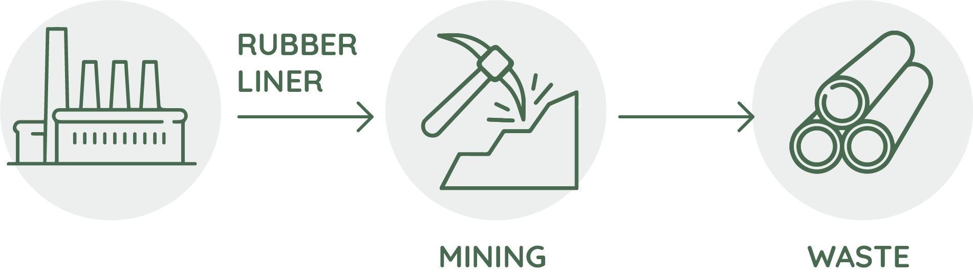 Currently, rubber-worn items are discarded and replaced with new rubber-lined metal components. This process can be extremely wasteful, costing millions of dollars and needlessly generating thousands of tons of CO2.