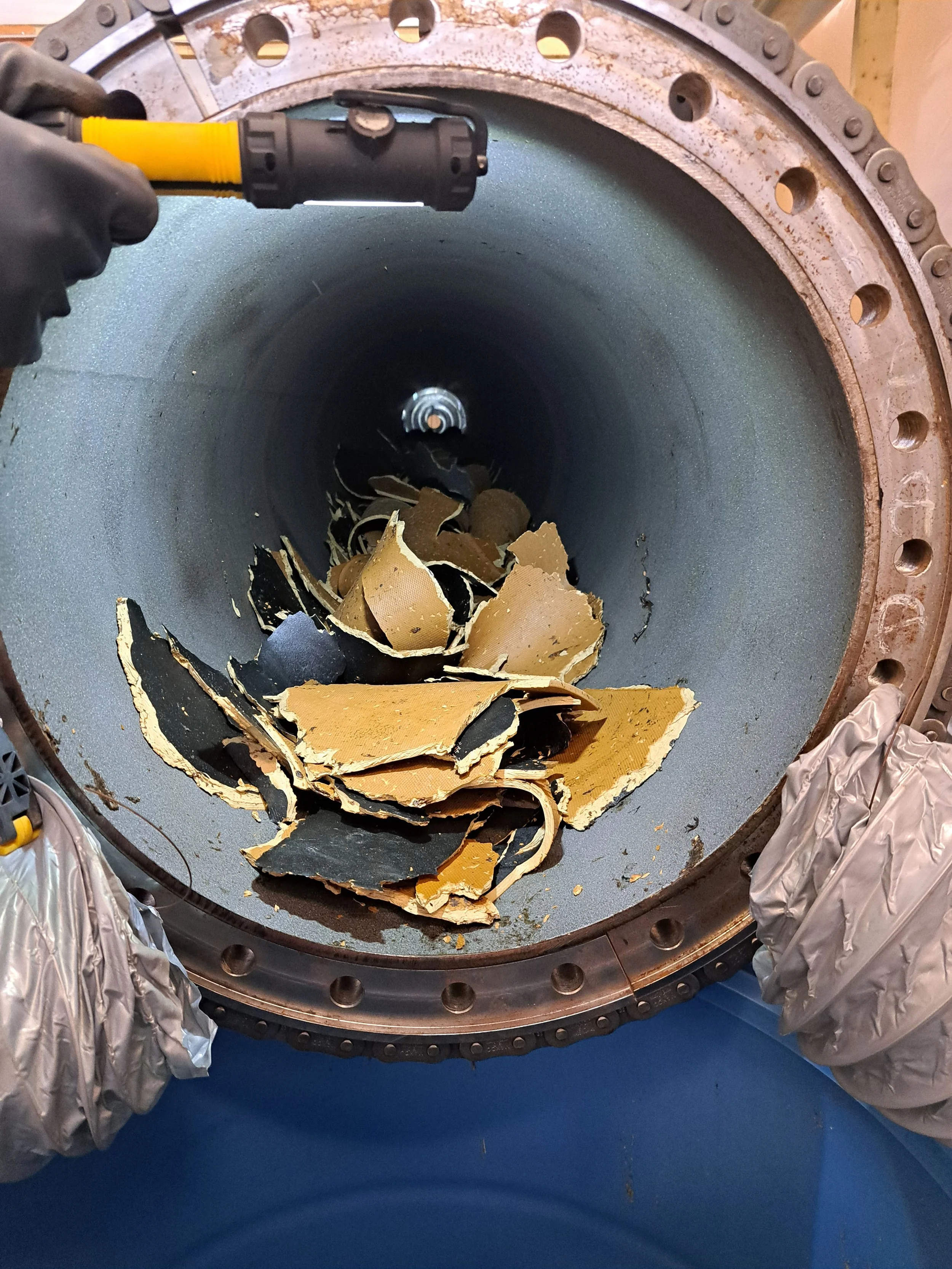 This process separates adhered rubber from steel components without damaging the metal surface.